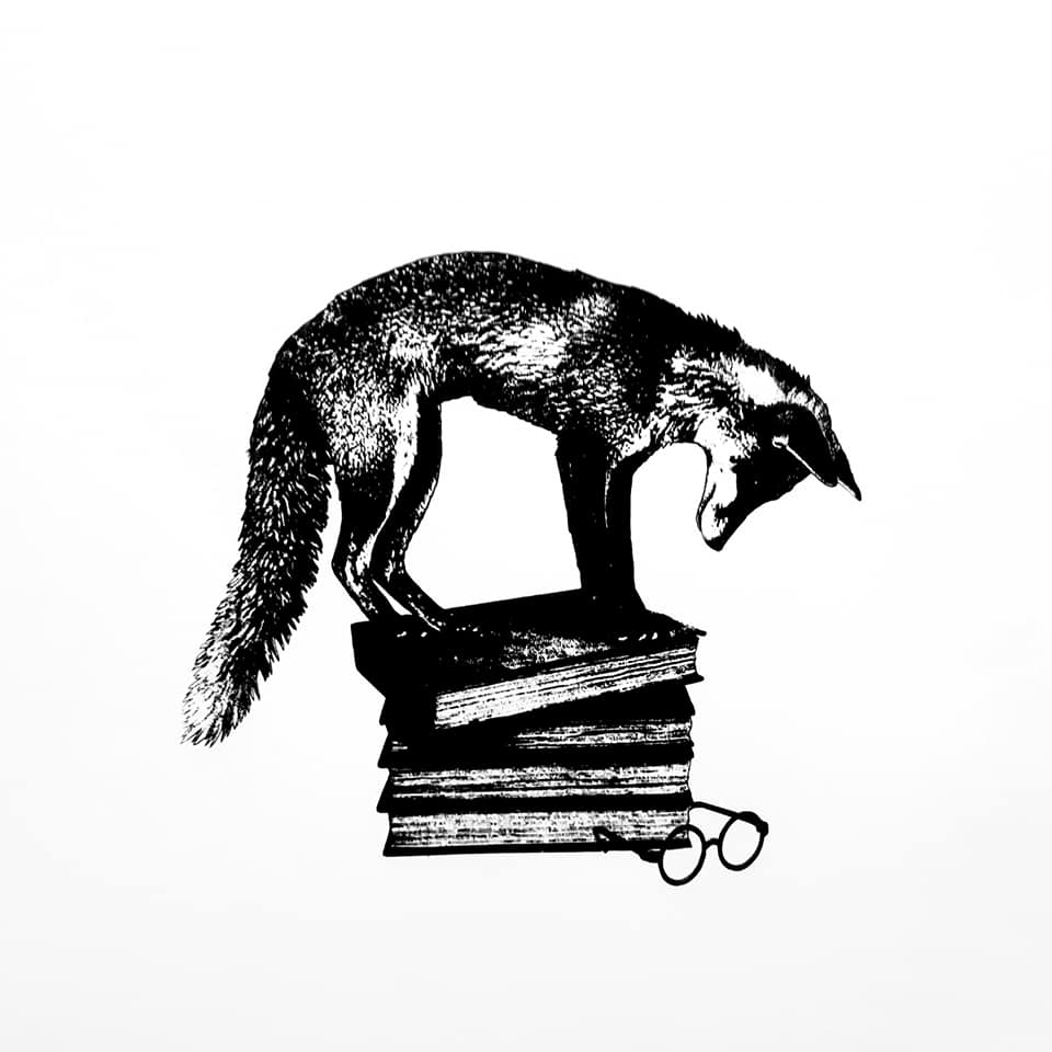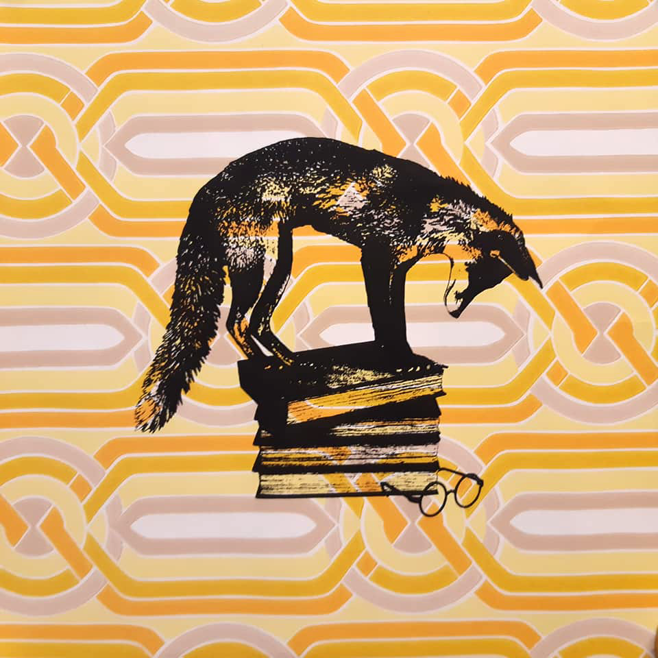 Fuchs screen print 50 x 50 cm on original 70s wallpaper