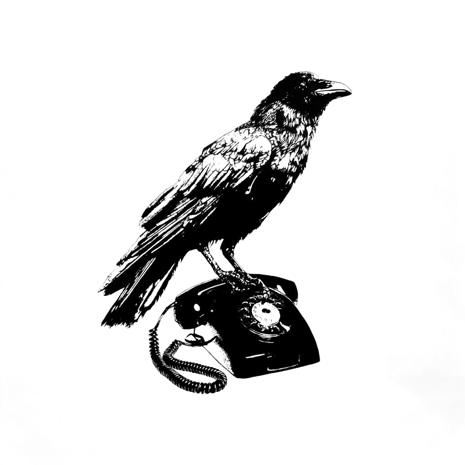 Raven screen print 50 x 50 cm on original 70s wallpaper