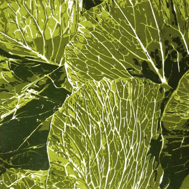 Linocuts from the winter vegetables series: Savoy cabbage & cabbage / 30 x 30