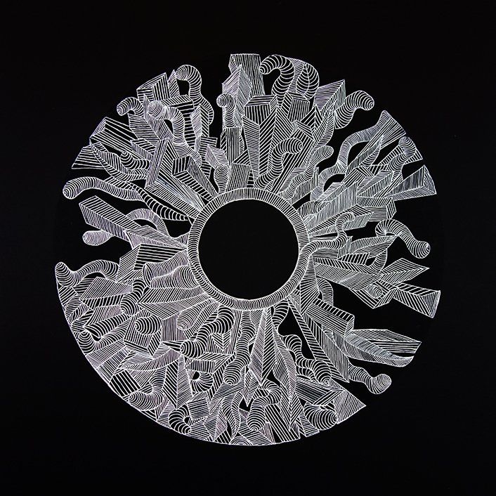 Comunicación, dibujo fineliner y corte a cuchillo, 50 x 70 cm