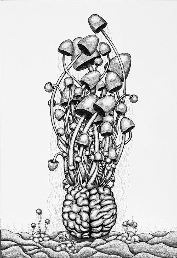 Hongo cerebral, delineador fino, 50 x 70 cm