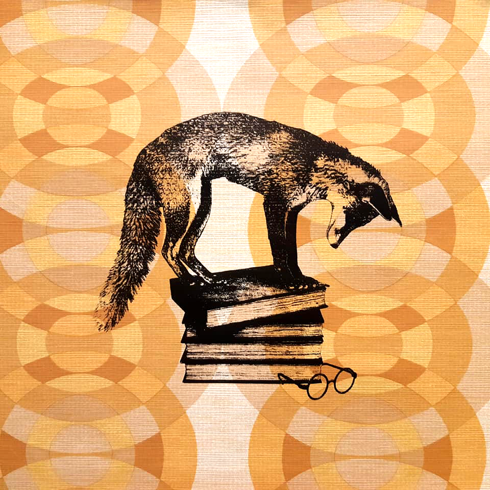 Sérigraphie Fuchs 50 x 50 cm sur papier peint original des années 70