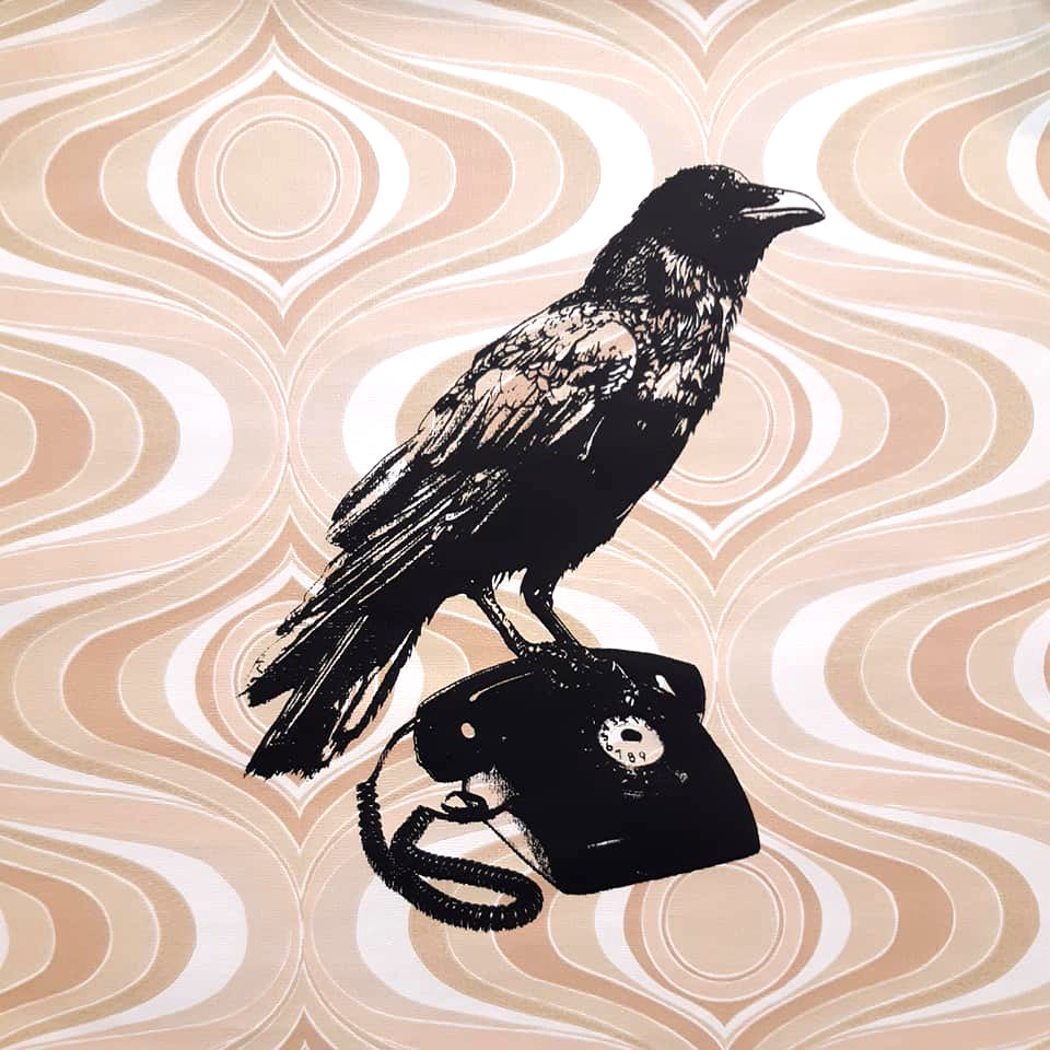 Sérigraphie Raven 50 x 50 cm sur papier peint original des années 70