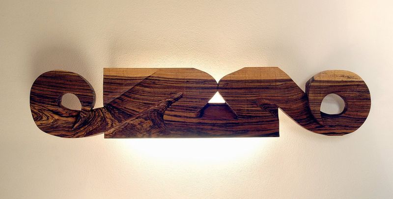 Gehörnt, Objet lumineux, 27 x 127 cm, Zebrano