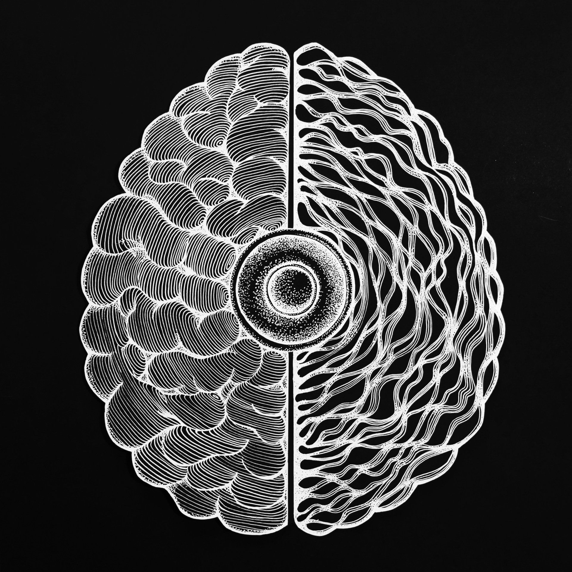 Hongo cerebral, delineador fino, 50 x 70 cm